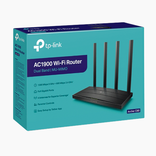 (ARCHERC80) Router inalámbrico AC Wave 2 1900 doble banda 1 puerto WAN 10/100/1000 Mbps y 4 puertos LAN 10/100/1000 Mbps, MIMO 3X3, Beamforming